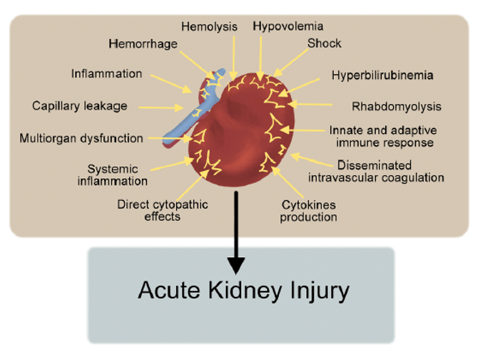 • IRA em 2,7–35% dos casos de dengue grave (dados de estudos observacionais)