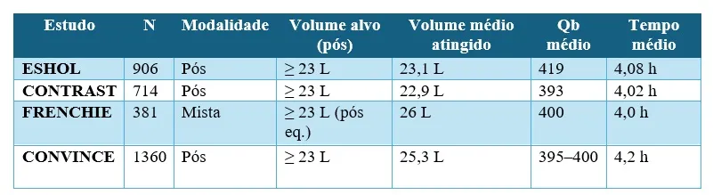* Definição operacional: volume convectivo ≥ 23 L/sessão na pós-diluição (alguns estudos consideram ≥ 20 L).