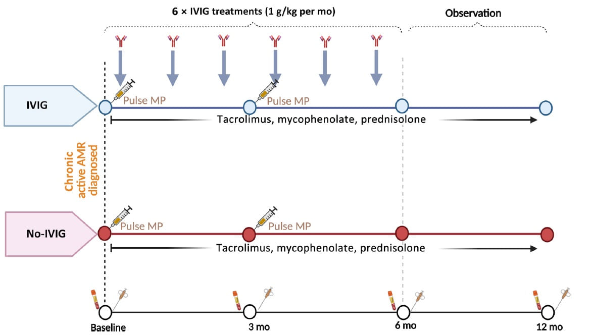 A rejeição mediada por anticorpos crônica ativa (RMAC ativa) é uma das principais causas de perda tardia de enxertos renais. Até então, não existia uma terapia comprovadamente eficaz. A imunoglobulina intravenosa (IVIG), usada de forma empírica em protocolos de dessensibilização e rejeição aguda, **ganhou agora evidência em RMAC ativa.**